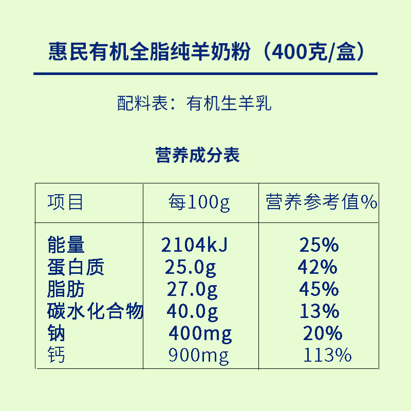 88038威尼斯有机全脂纯羊奶粉400克/盒